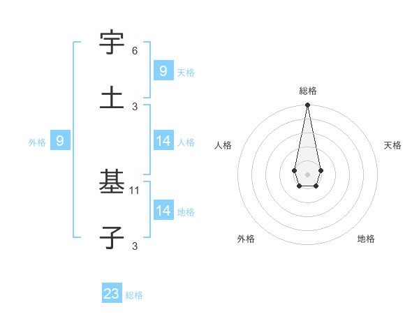 宇土 基子さんの総格は23画の5点!