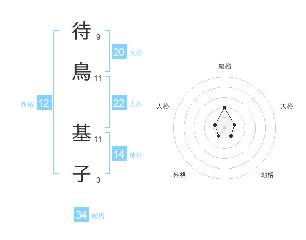 待鳥 基子さんの総格は34画の2点!