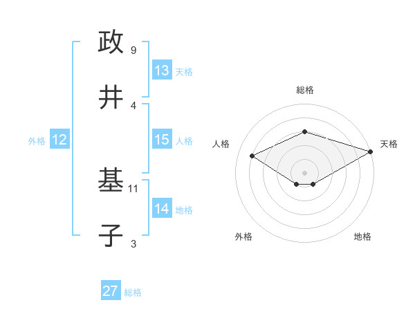 政井 基子さんの総格は27画の3点!