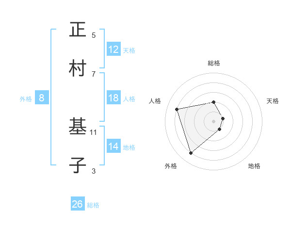 正村 基子さんの天格は12画の1点!
