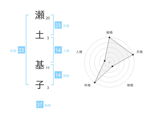 瀬土 基子さんの外格は23画の5点!