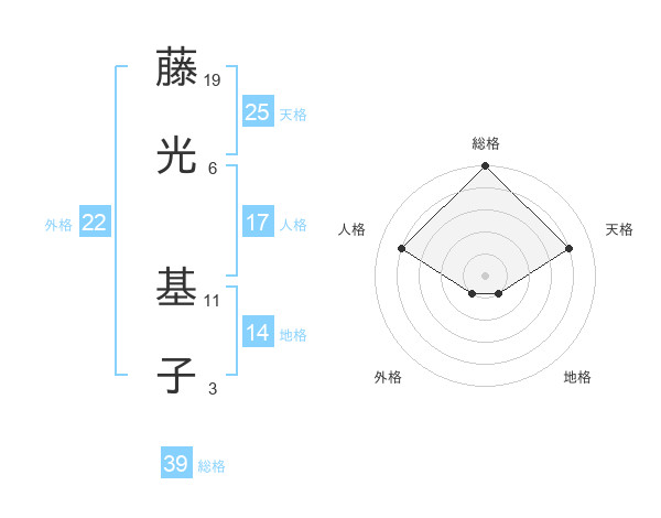 藤光 基子さんの総格は39画の5点!