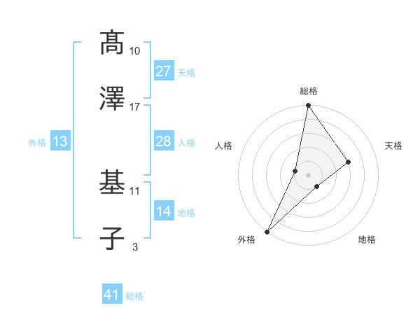 髙澤 基子さんの総格は41画の5点!