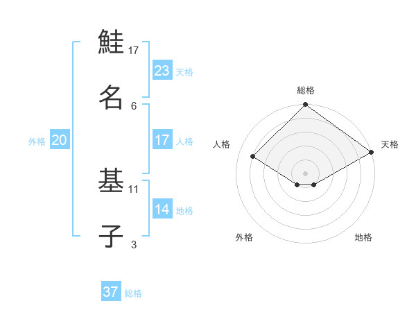 鮭名 基子さんの総格は37画の5点!