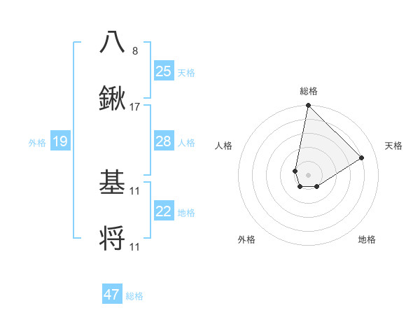 八鍬 基将さんの総格は47画の5点!