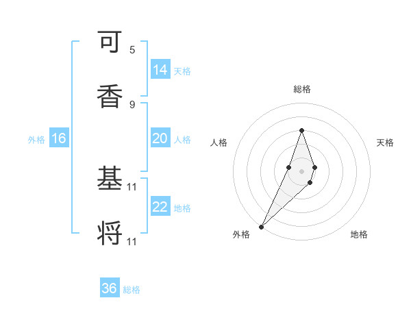 可香 基将さんの外格は16画の5点!