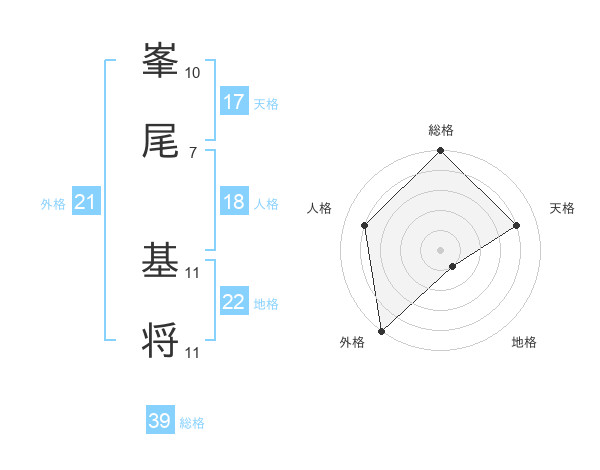 峯尾 基将さんの天格は17画の4点!