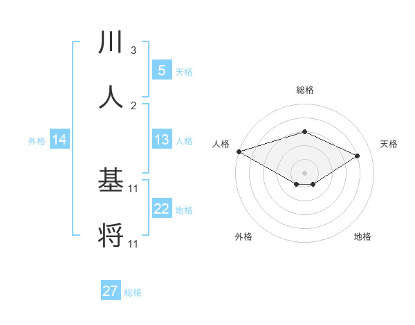 川人 基将さんの総格は27画の3点!