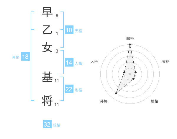 早乙女 基将さんを姓名の画数から五運を鑑定