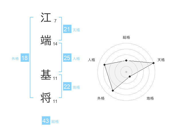 江端 基将さんの天格は21画の5点!