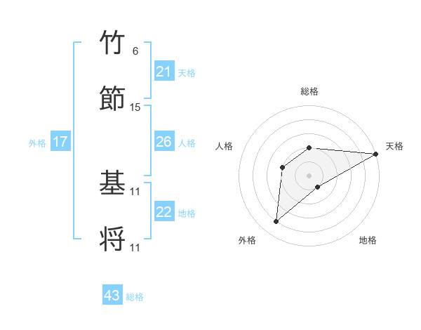 竹節 基将さんの天格は21画の5点!