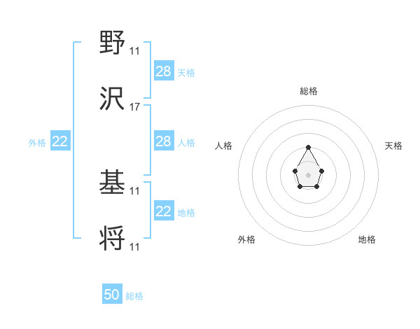 野沢 基将さんの総格は50画の2点!