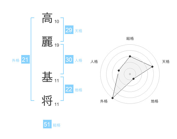 高麗 基将さんの総格は51画の3点!
