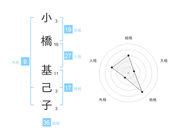 小橋 基己子さんの天格は19画の1点!