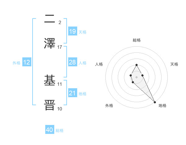 二澤 基晋さんを姓名の画数から五運を鑑定