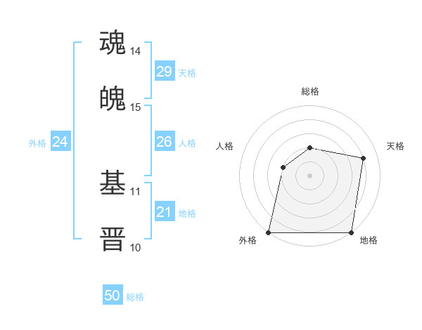 魂魄 基晋さんを姓名の画数から五運を鑑定