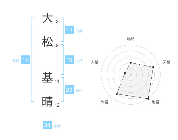 大松 基晴さんの総格は34画の2点!