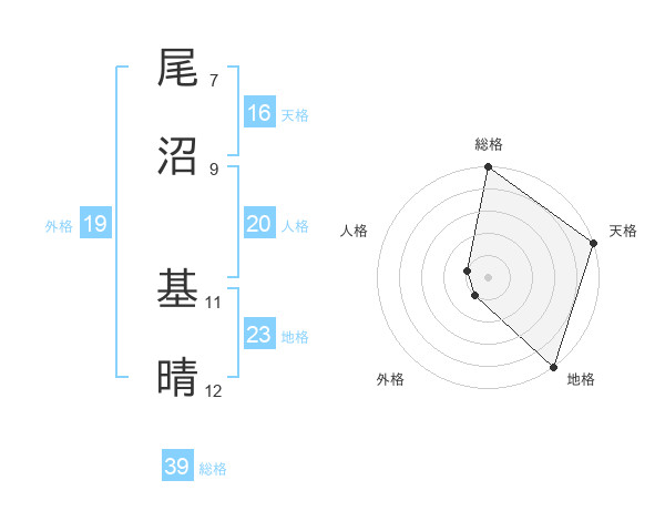 尾沼 基晴さんを姓名の画数から五運を鑑定
