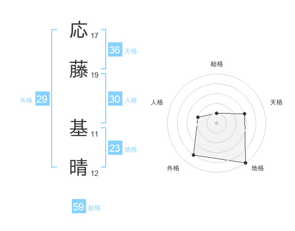 応藤 基晴さんの天格は36画の3点!
