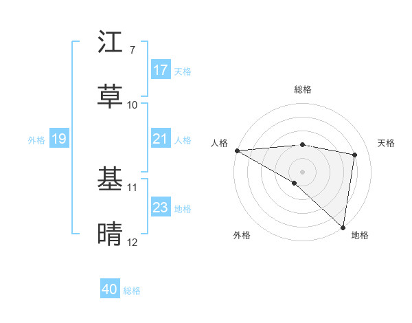 家系が持つ宿命的な運勢を表します。祖先から受け継いだ苗字ですので自分の力が及びません。家柄を象徴します。