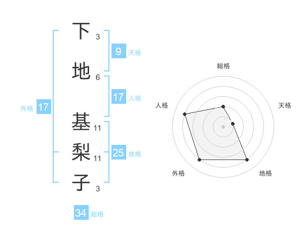 下地 基梨子さんを姓名の画数から五運を鑑定