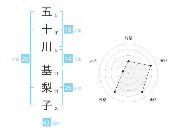 五十川 基梨子さんを姓名の画数から五運を鑑定