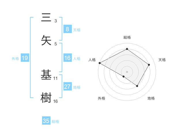 三矢 基樹さんの天格は8画の4点!