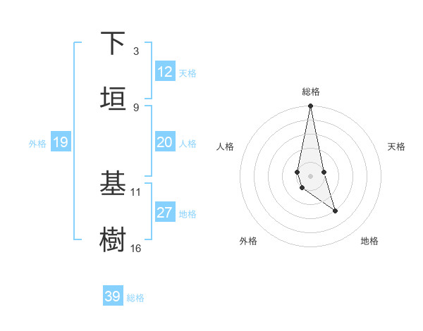 下垣 基樹さんの総格は39画の5点!