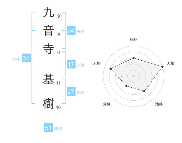 九音寺 基樹さんを姓名の画数から五運を鑑定