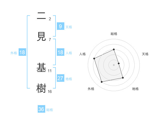 二見 基樹さんの地格は27画の3点!