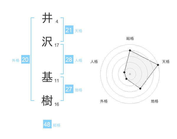 井沢 基樹さんの地格は27画の3点!
