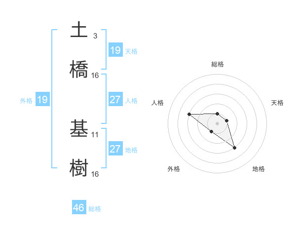土橋 基樹さんの地格は27画の3点!
