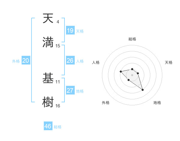 天満 基樹さんの総格は46画の1点!
