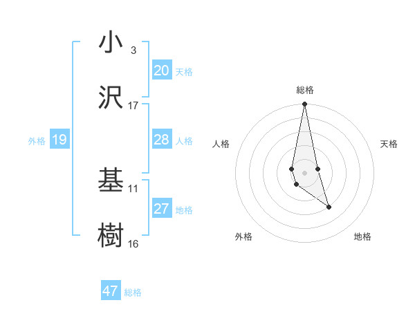 小沢 基樹さんを姓名の画数から五運を鑑定