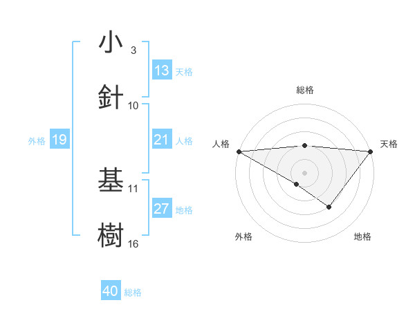 小針 基樹さんの天格は13画の5点!