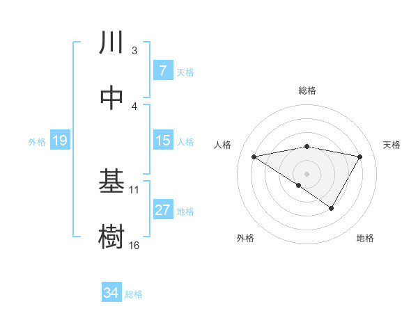 川中 基樹さんの総格は34画の2点!