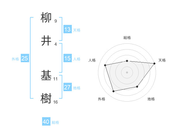 柳井 基樹さんの天格は13画の5点!