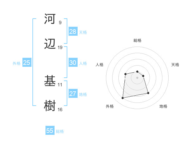河辺 基樹さんの総格は55画の1点!