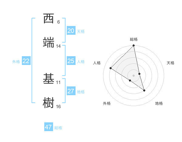 西端 基樹さんの総格は47画の5点!
