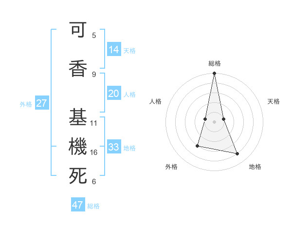 可香 基機死さんの総格は47画の5点!