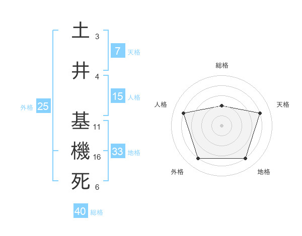 土井 基機死さんの地格は33画の4点!
