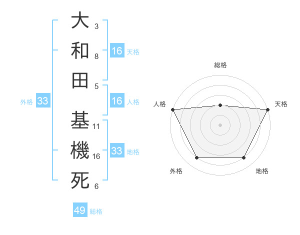 大和田 基機死さんを姓名の画数から五運を鑑定