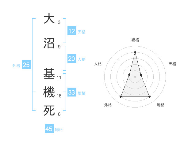 大沼 基機死さんを姓名の画数から五運を鑑定