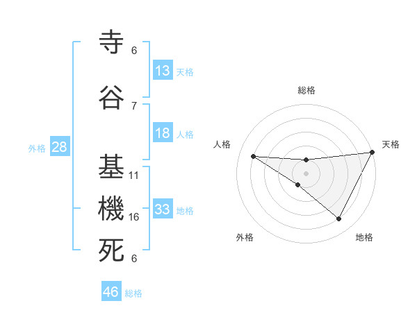 寺谷 基機死さんの総格は46画の1点!