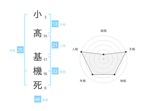 小髙 基機死さんを姓名の画数から五運を鑑定