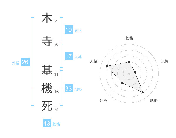 木寺 基機死さんの総格は43画の2点!
