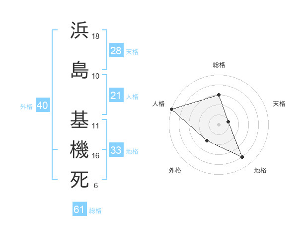 浜島 基機死さんを姓名の画数から五運を鑑定