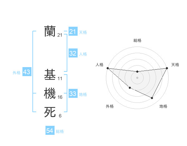蘭 基機死さんの天格は21画の5点!
