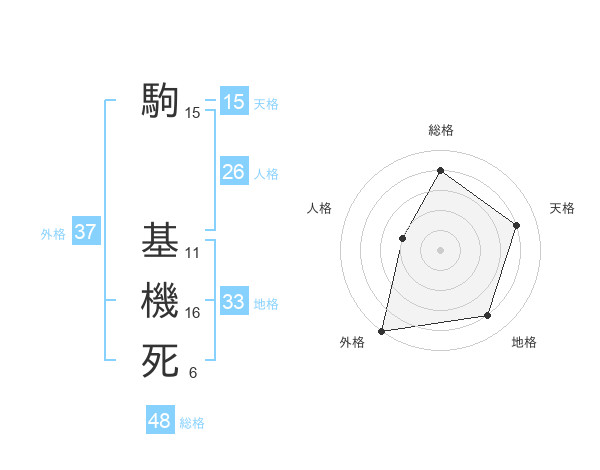 駒 基機死さんの外格は37画の5点!