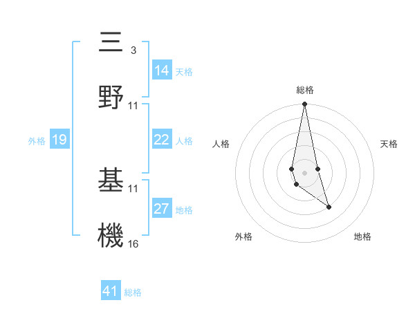 三野 基機さんの総格は41画の5点!